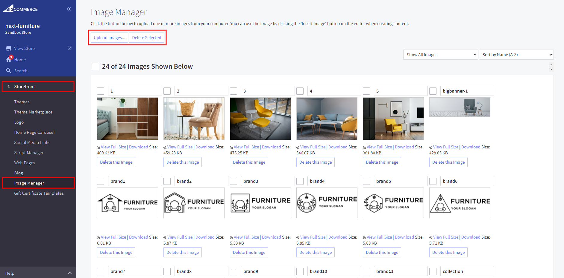 - 1. Go to Storefront › Image Manager, then click Upload Images.