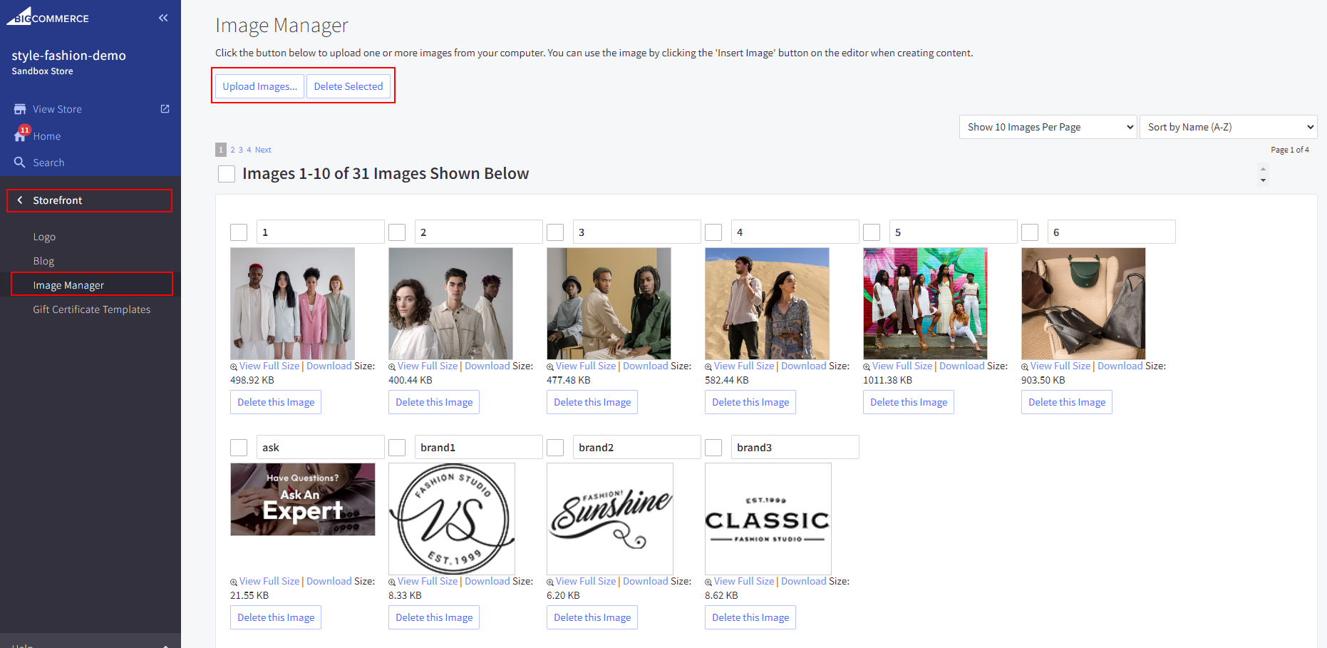 - 1. Go to Storefront › Image Manager, then click Upload Images.