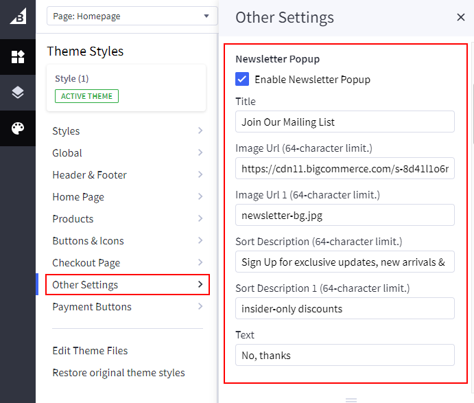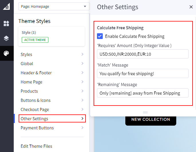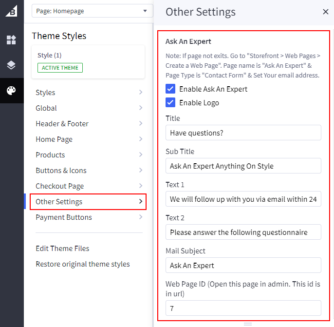 In the Theme Editor >Go to >. Click on "Other Settings".