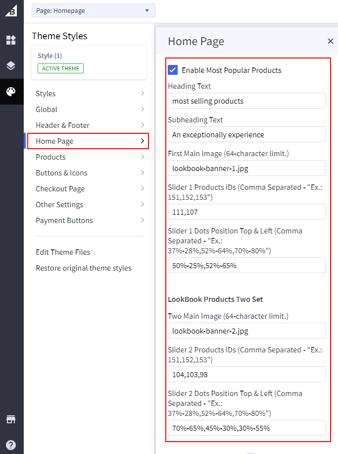 Now Add banner name Which upload in Image Manger under LookBook Products Heading