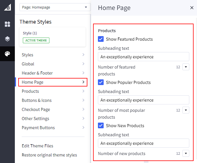 In the Theme Editor >Go to >. Click on "Home page"> Products.