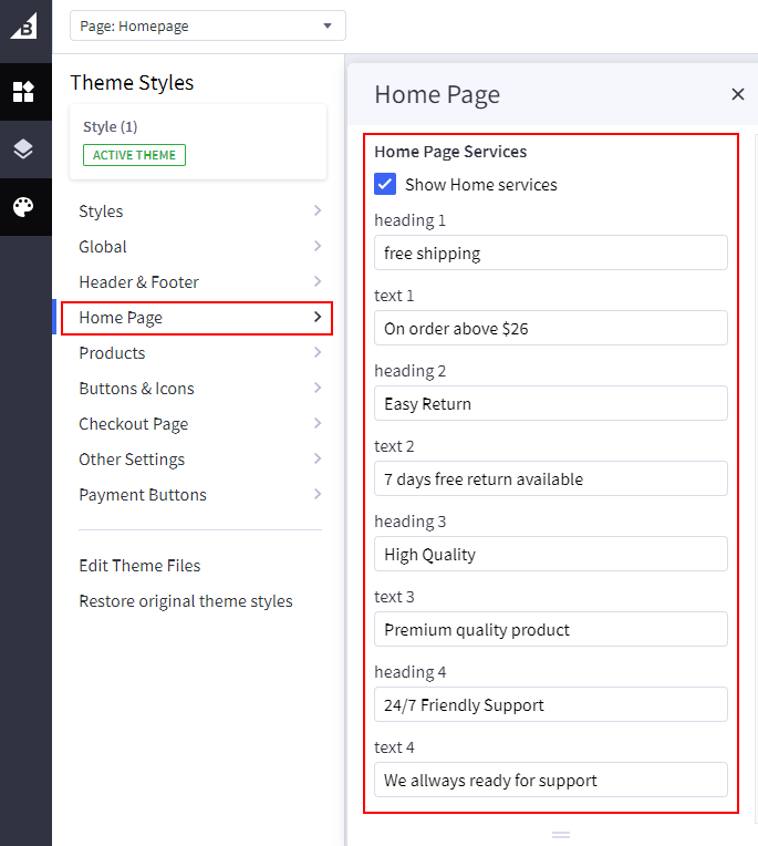 - Go to Channel manager > Themes > click Customize in of Hightech theme to open Page Builder.