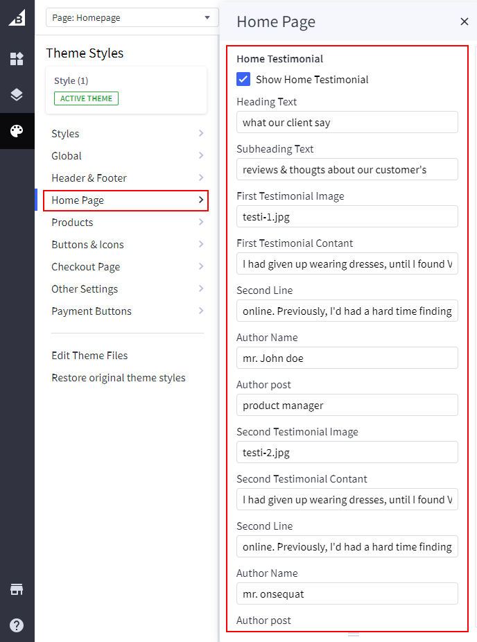 In the Theme Editor >Go to >. Click on "Home page" button.