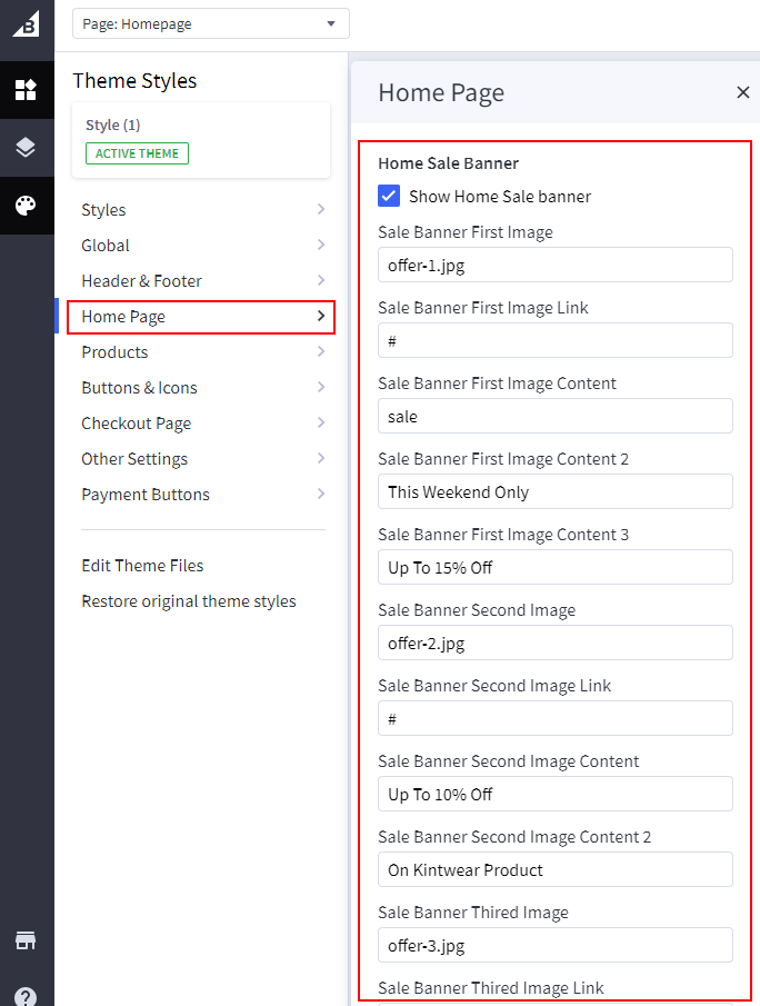 Now Add banner name Which upload in Image Manger under Home Sale Banner Heading
