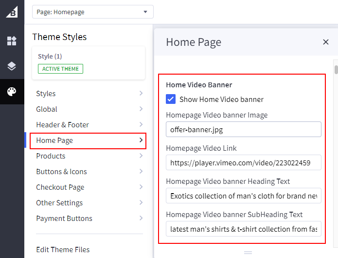 Now Add banner name Which upload in Image Manger under Home Video Banner Heading