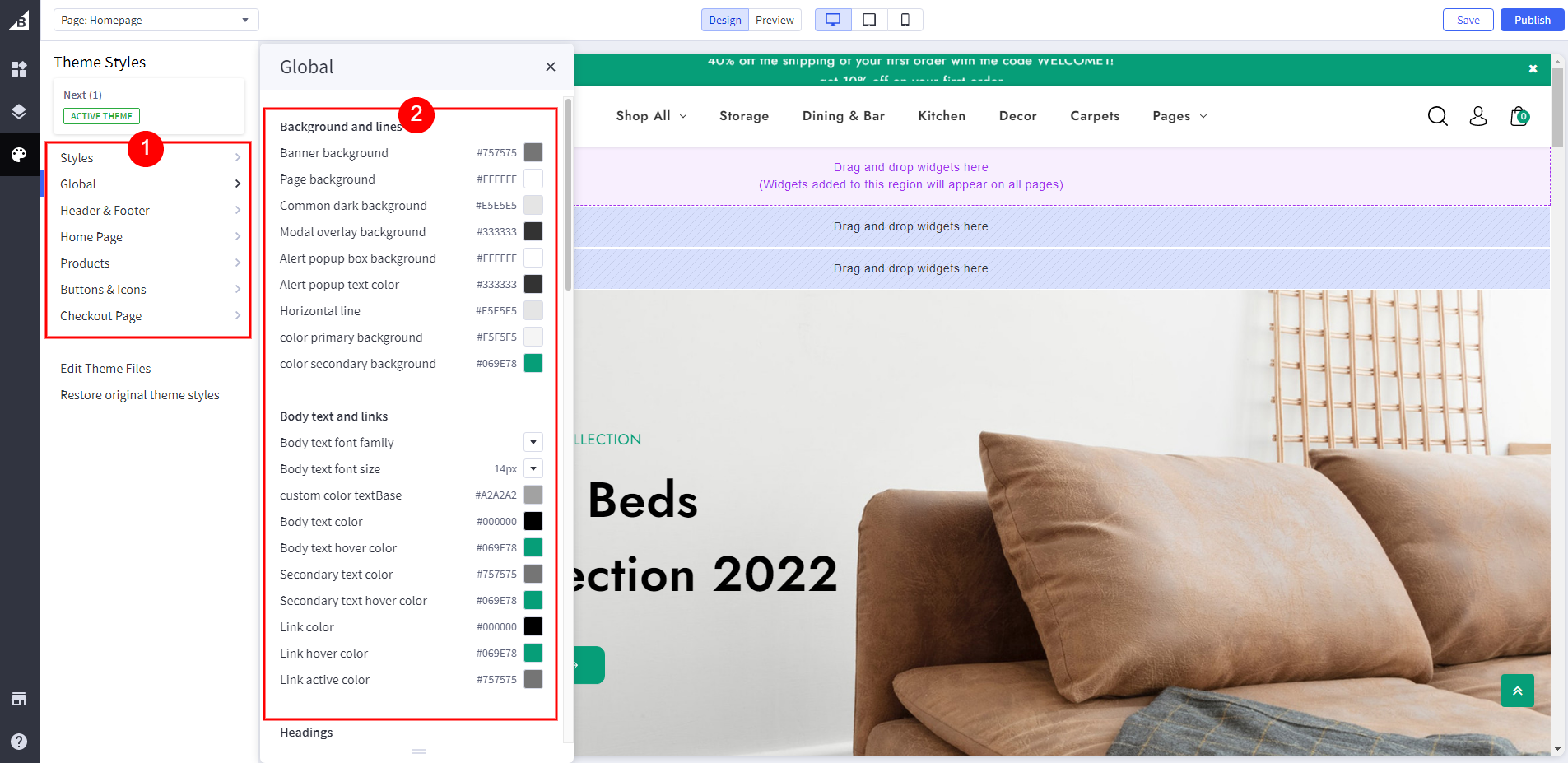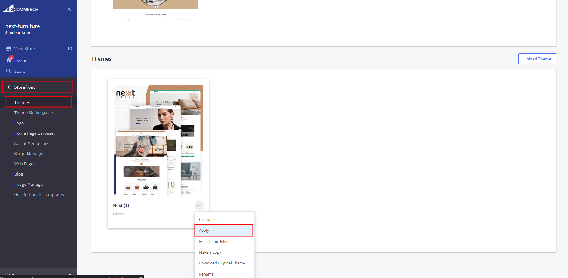 - Go to Storefront > My Themes > click Customize in of Next theme to open Page Builder.