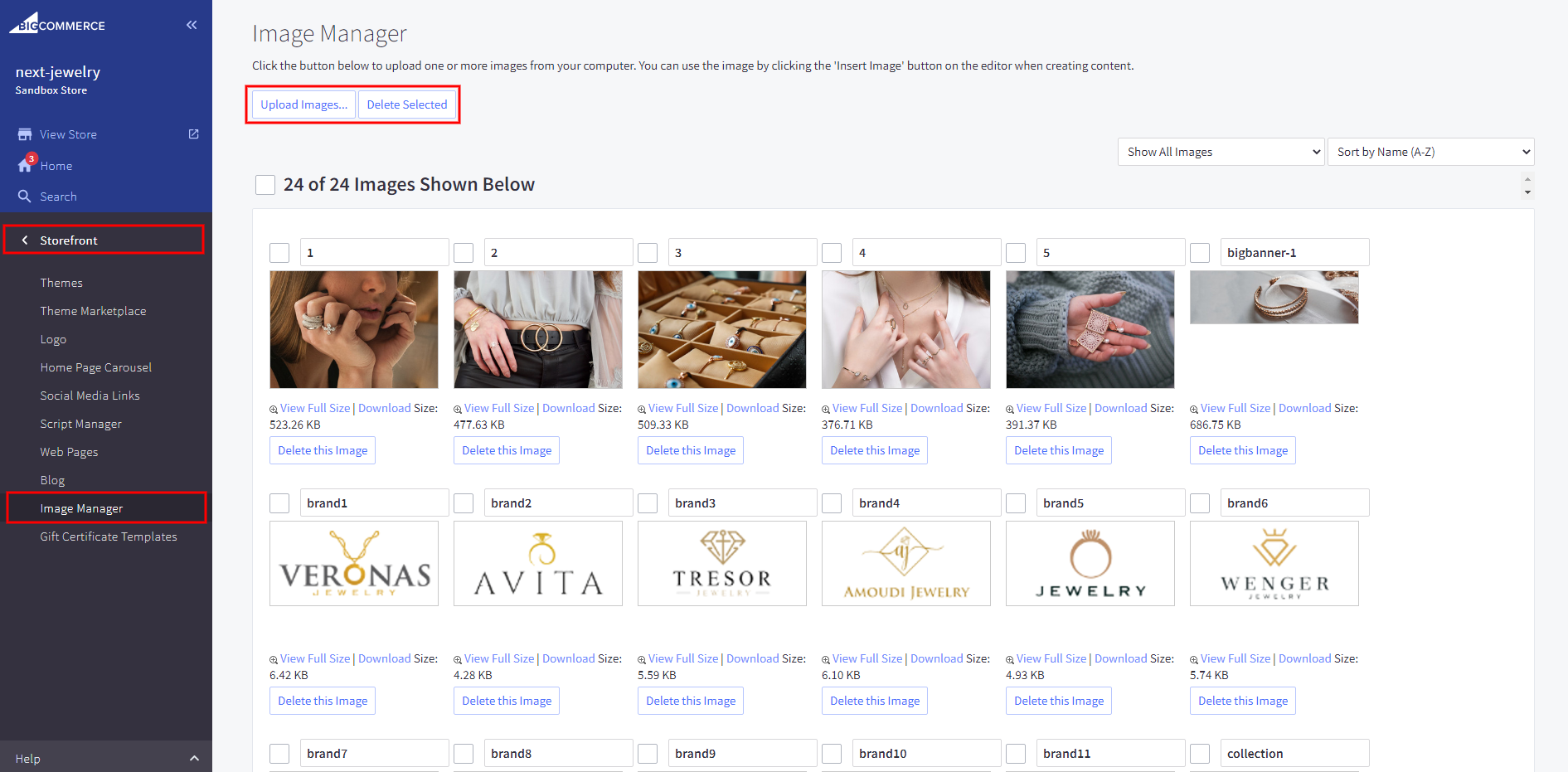 - 1. Go to Storefront › Image Manager, then click Upload Images.