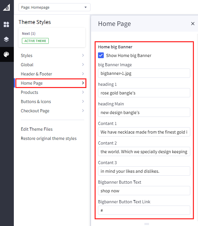Now Add banner name Which upload in Image Manger under Home Top Banner Heading