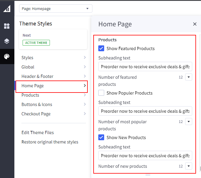 In the Theme Editor >Go to >. Click on "Home page"> Products.