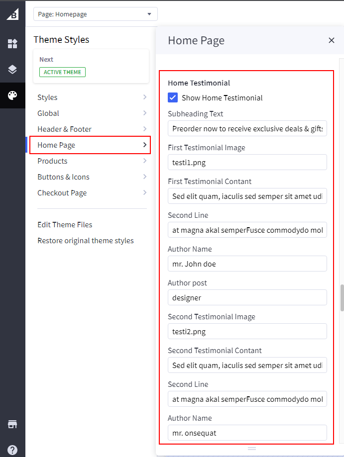 In the Theme Editor >Go to >. Click on "Home page" button.