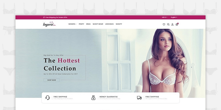 Lingerie Prestashop Responsive Theme is specially designed for Lingerie Products, Women Wear, Fashion Wear, Cosmetic and Multipurpose stores.