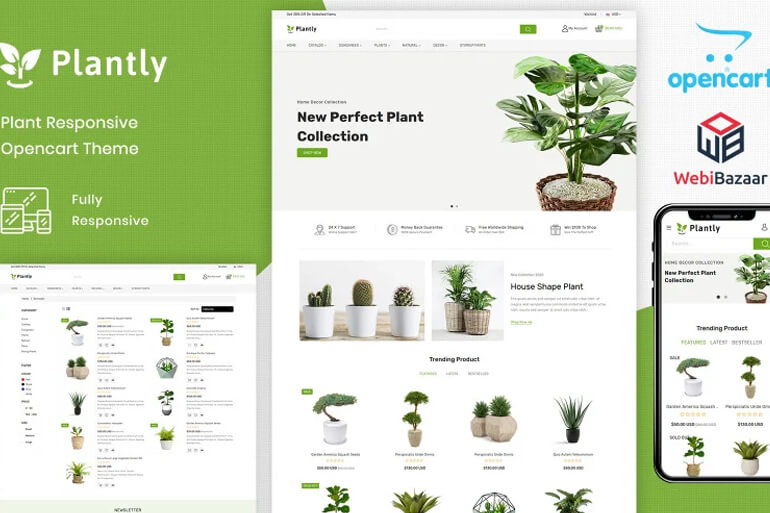 Planty OpenCart theme is a perfect choice for websites related to plants and nursery topics. It will also be a splendid solution for architecture-related websites. The theme features a clean and well-balanced design that provides your customers with an intuitive online shopping experience. It’s a responsive web design, which lets your buyers place orders on the go. It’s an SEO-friendly and lightweight theme, which has all the essentials needed to improve your site’s position in search engines and attract more customers.