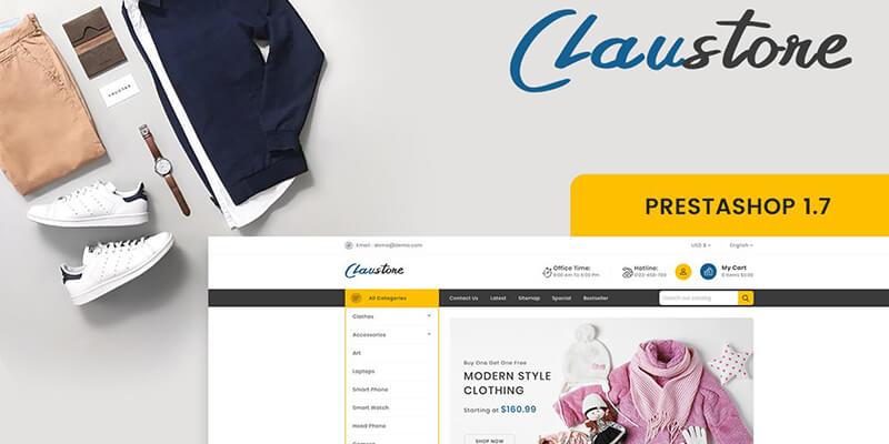Clausestore is the best fashion PrestaShop theme and clean, modern and elegant design that provides customers with a great shopping experience. It is used by many store owners like clothing stores, watch stores, shoe stores, accessories stores, and furniture shops.