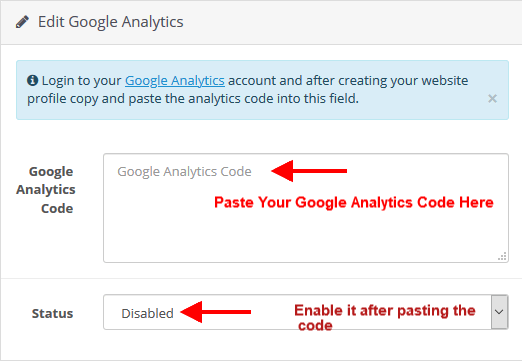 5. As you click on the edit button you will be able to paste your Google Analytics code as shown below :