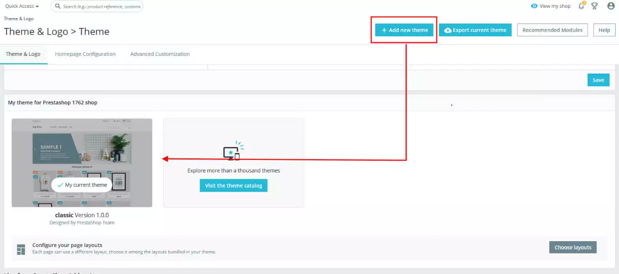 Select any themes from the My Themes Option. if You want to use Webibazaar Templates in PrestaShop Demo then you just need to select Add New Themes as per the given image below.