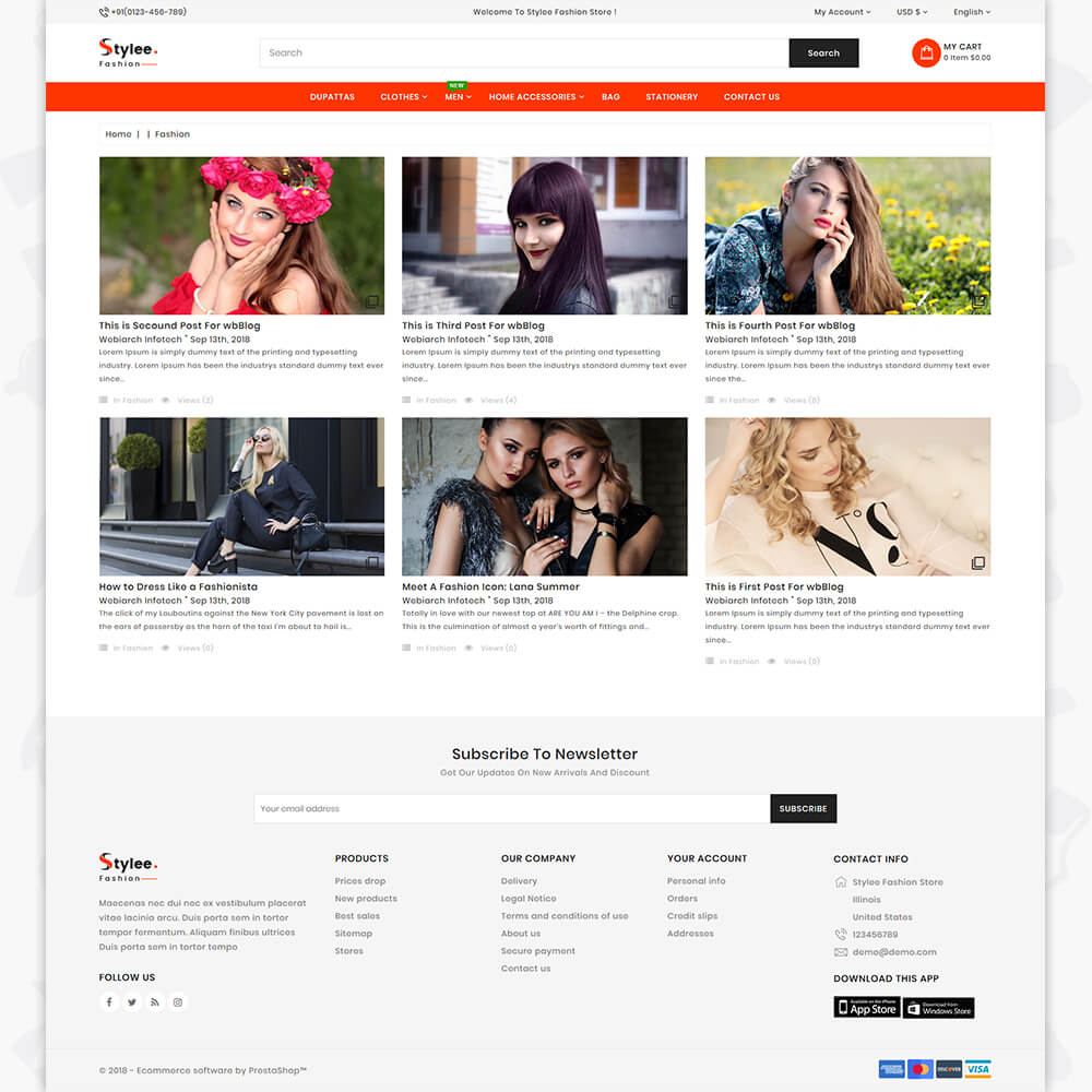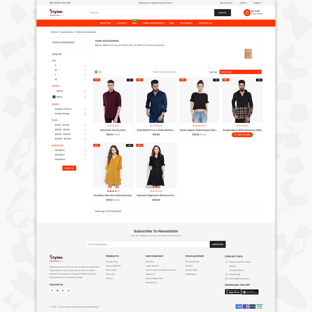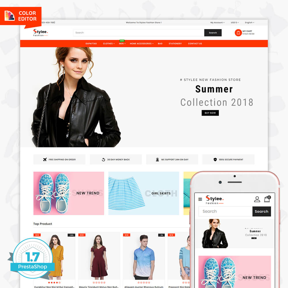 Stylee - The Mega Fashion PrestaShop Template is a responsive theme and designed for selling Fashion, Womans, Men wear, Wear, Accessories, Clothing store. The theme is responsive and supports all devices, user-friendly and fine-looking.