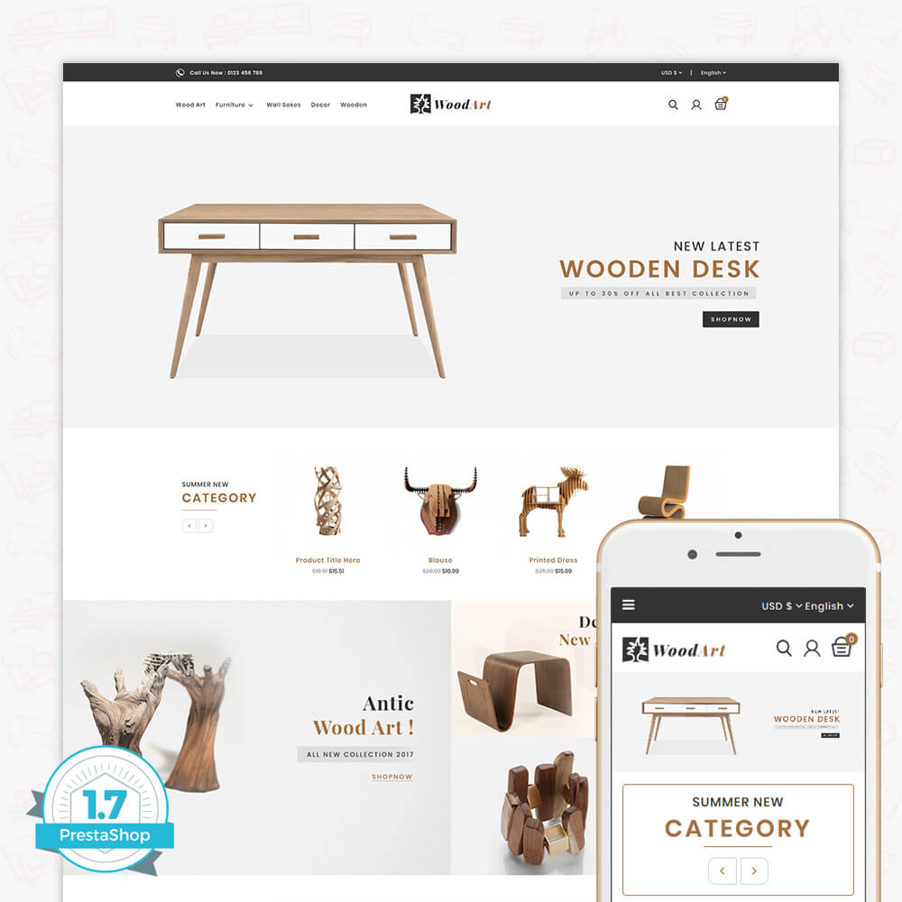 WoodArt - The Furniture Store is responsive Prestashop theme store with clean and simple style for Furniture,Bakery,Electronics, Computers,Cake, Accessories, Camera store which is highly relevant for your store.