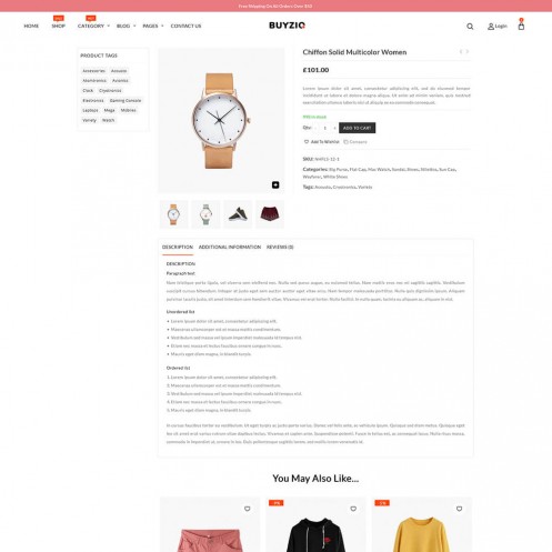 Buyzio Fashion Woocommerce Theme is a responsive retina multipurpose WooCommerce Press theme. You will get exclusive features such as revolution Slider, WPBakery Page Builder, Mailchimp, client review. The theme integrates Google Web Fonts, offering you a large variety of typefaces to choose from when customizing the theme. An Awesome Look on any device desktop, tablet or phone. Cartsa design is well Suitable for Electronic Shop, vendor based Shop, affiliate websites, Specially Design for Product base Shop. It is built and comes bundled with most of the advanced features available in most popular eCommerce websites, This gives your shop so much more depth with every product being able to have multiple attributes and variations, and as soon as they are added to your Cart they appear, no page reloads, no refresh necessary.